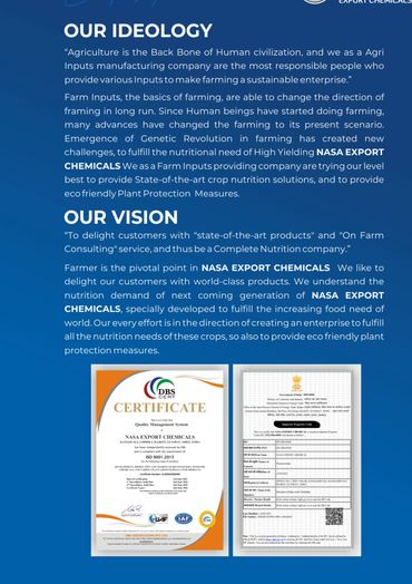 At NASA EXPORT CHEMICALS, we believe that agriculture should be sustainable, ethical, and accessible to all. We are committed to promoting sustainable agriculture practices, protecting the environment, and improving food security. We believe that by working together, we can create a better future for our planet and everyone on it.